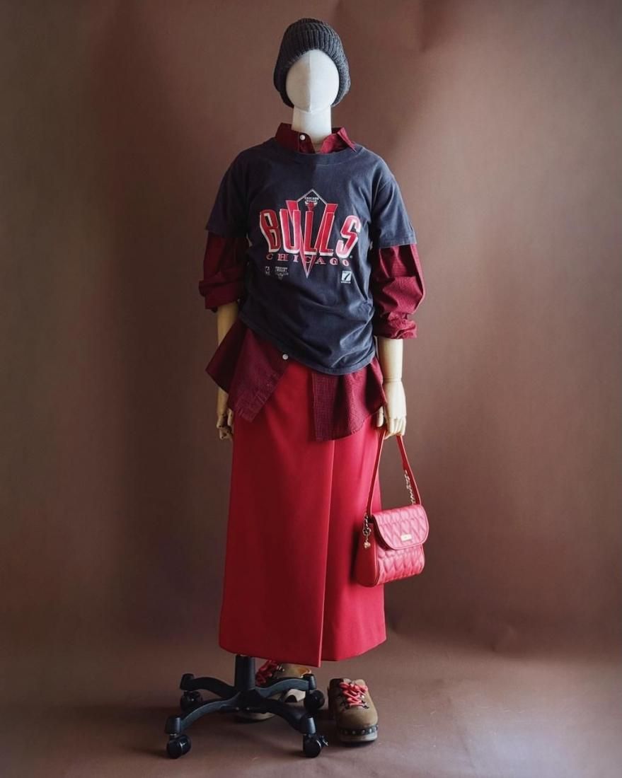 赤が気になる今季は、ジャケットやカーディガンからちらっと見せて、ひそかに応援します 笑