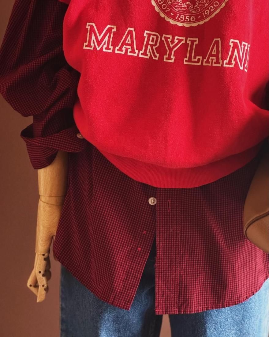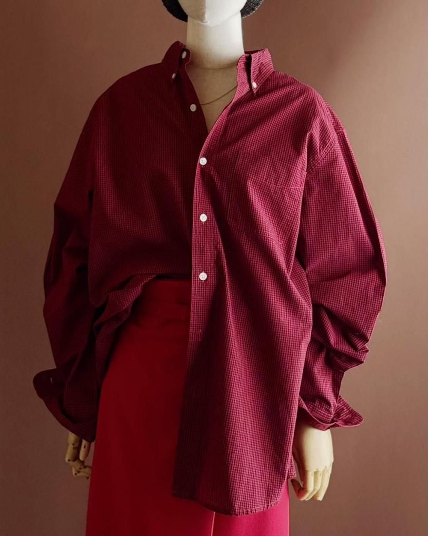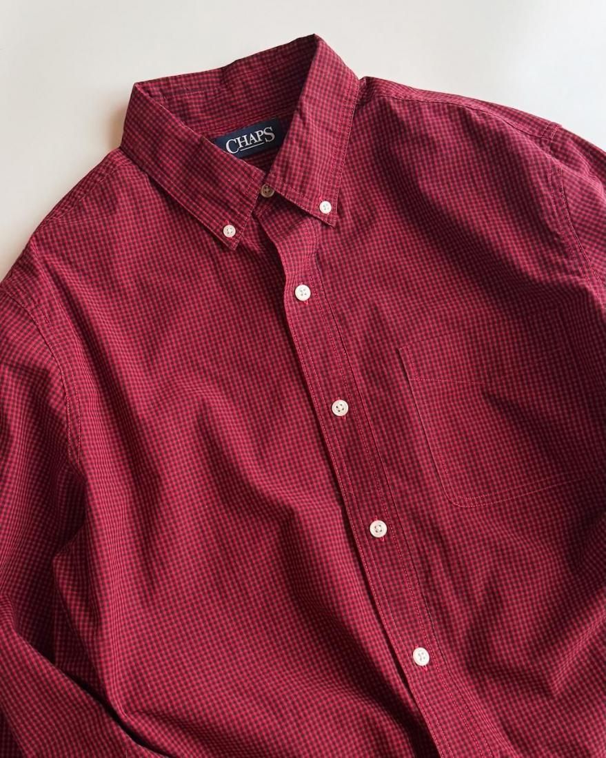 赤×黒のギンガムチェック柄がトラッドでオーセンティックな印象のボタンダウンシャツ。
