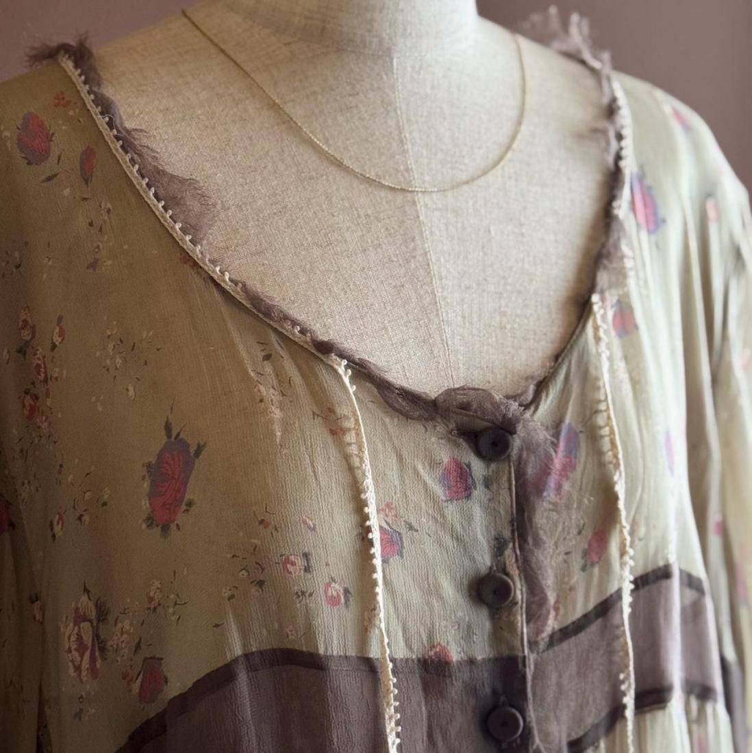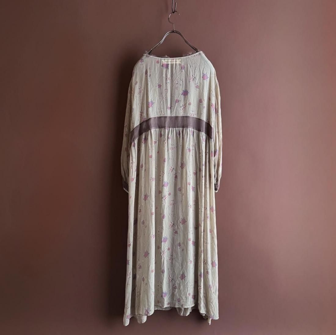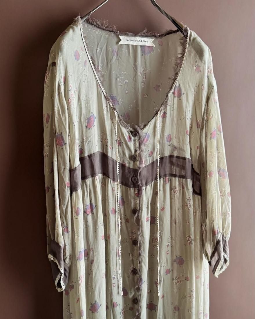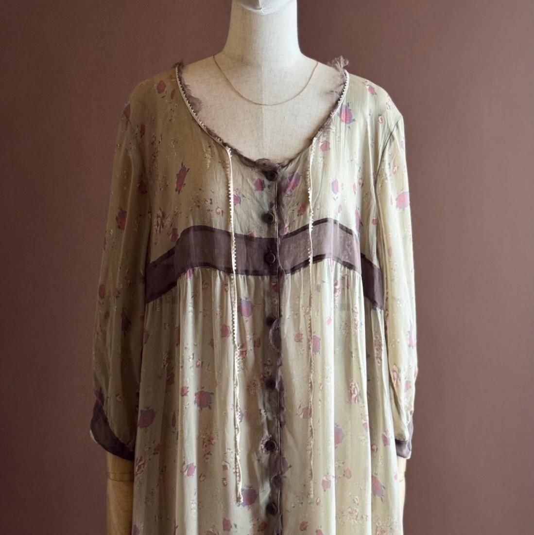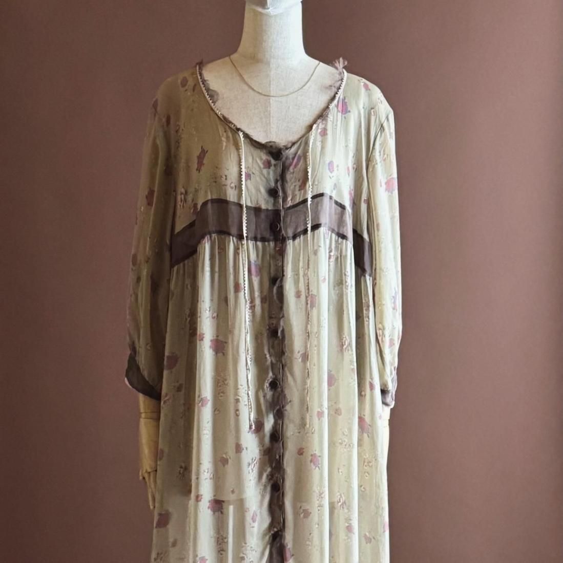 ヴィンテージランジェリーのような、透け感のあるくすんだ色・柔らかな風合いが素敵なローブワンピース。