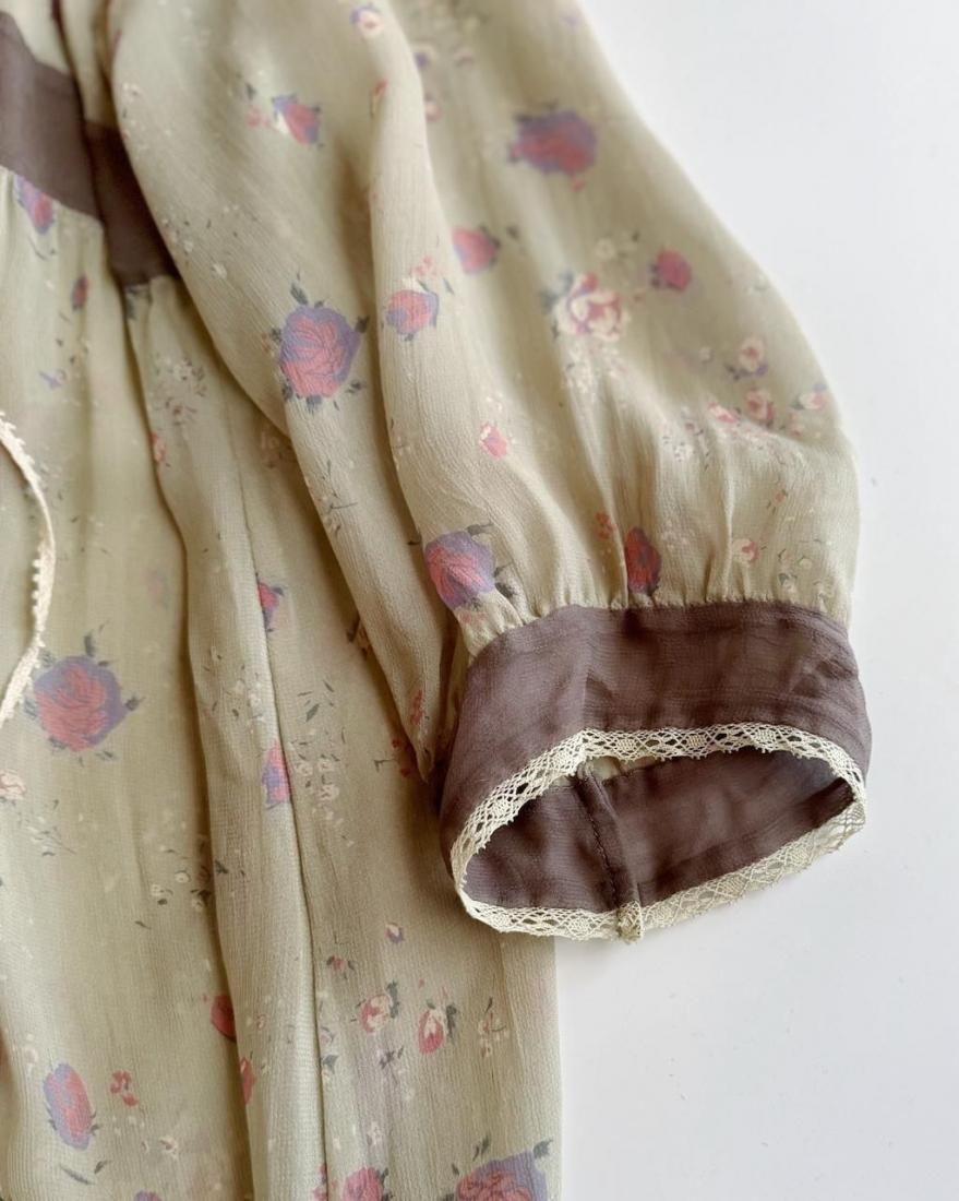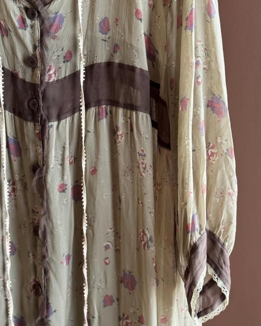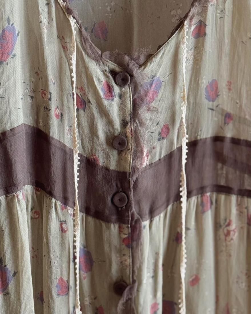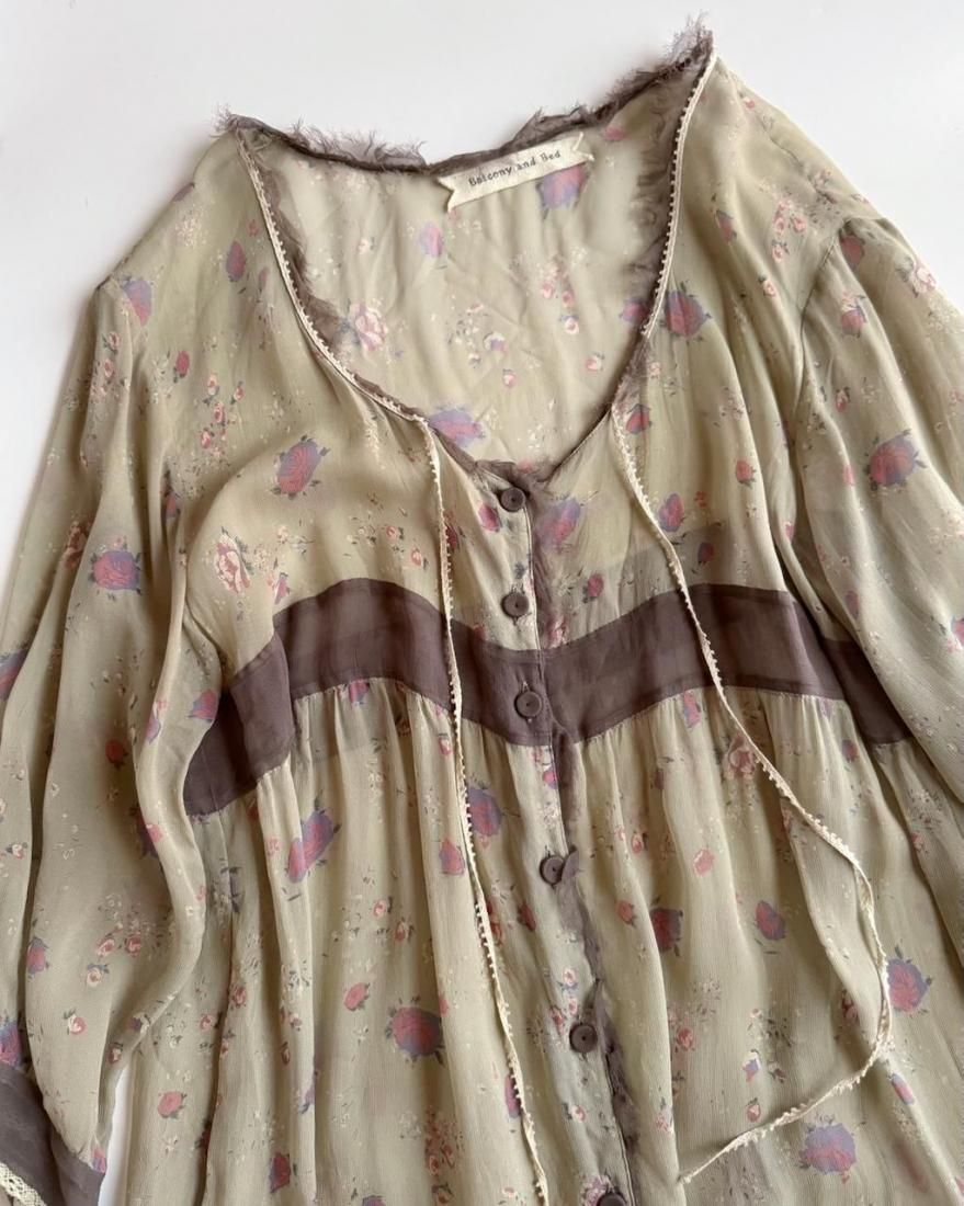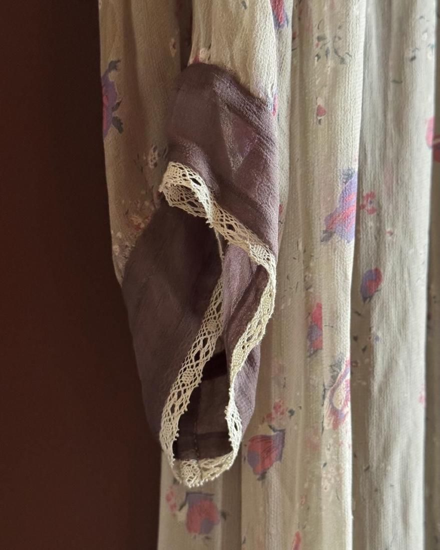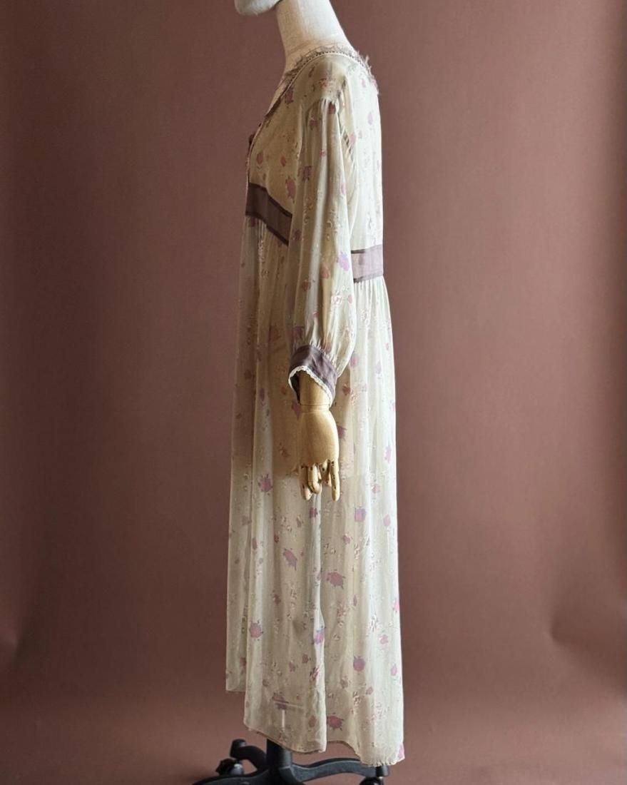 ヴィンテージランジェリーのような、透け感のあるくすんだ色・柔らかな風合いが素敵なローブワンピース。