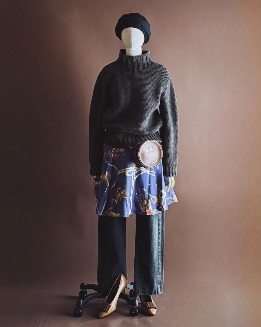 シルクスカーフをスカートに仕立てたような、さらりとした上質な風合いとミニ丈が素敵なスカート。