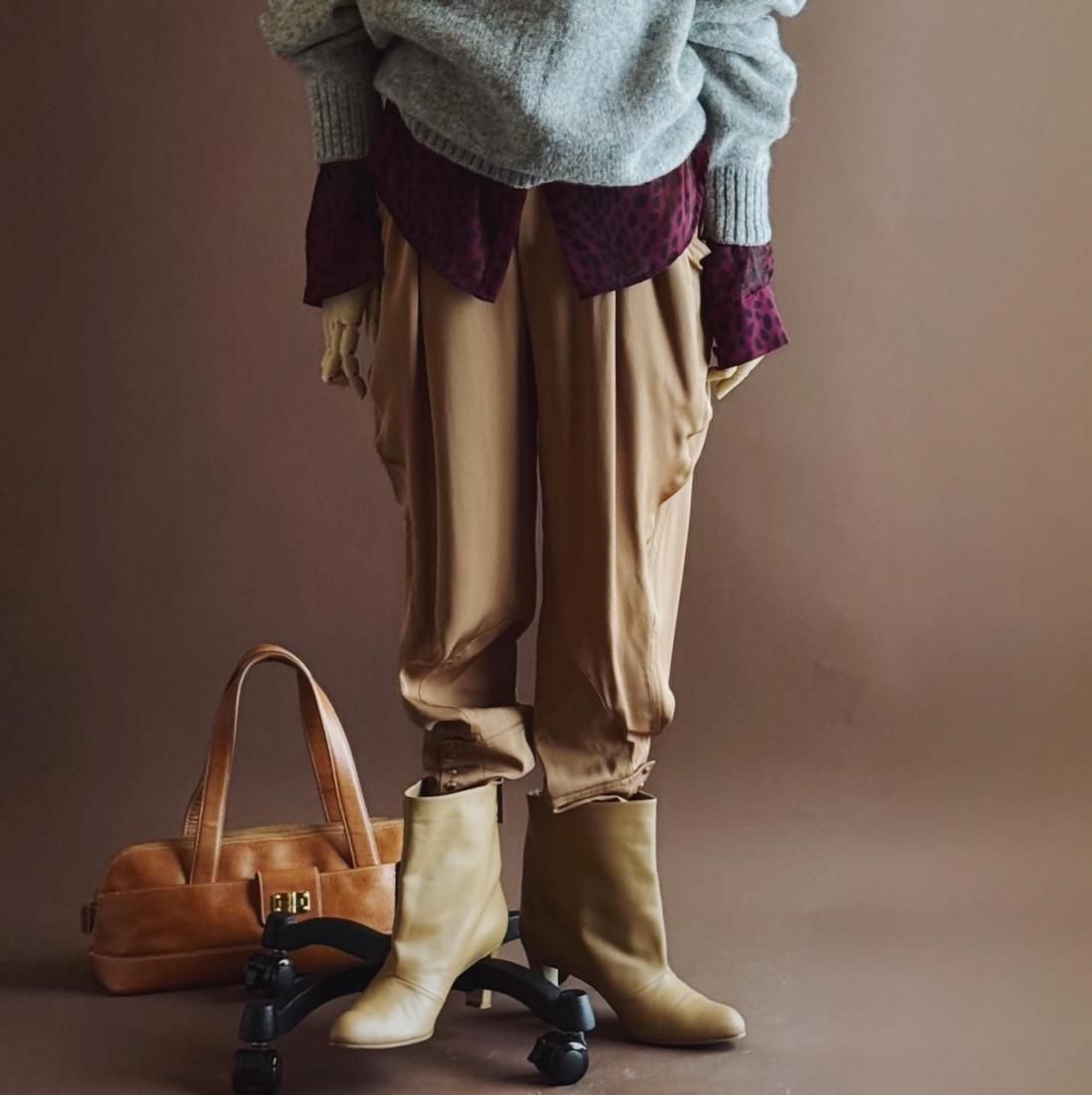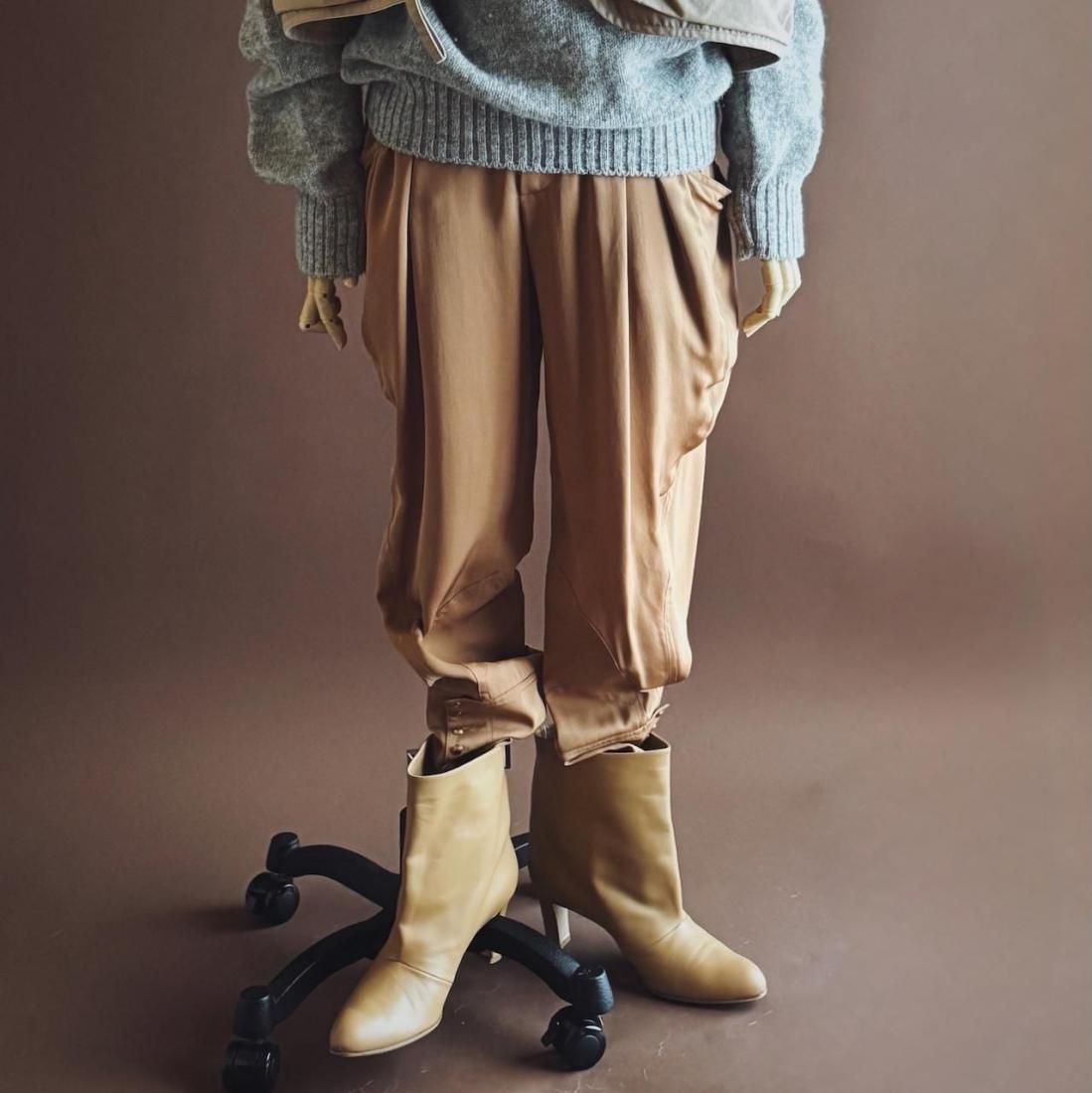 太もも周りはゆったりとしたシルエット、裾はギュッと絞られたジョッキーパンツ型は、パンプスで女性らしい着こなしはもちろん、ブーツインしても素敵です。
