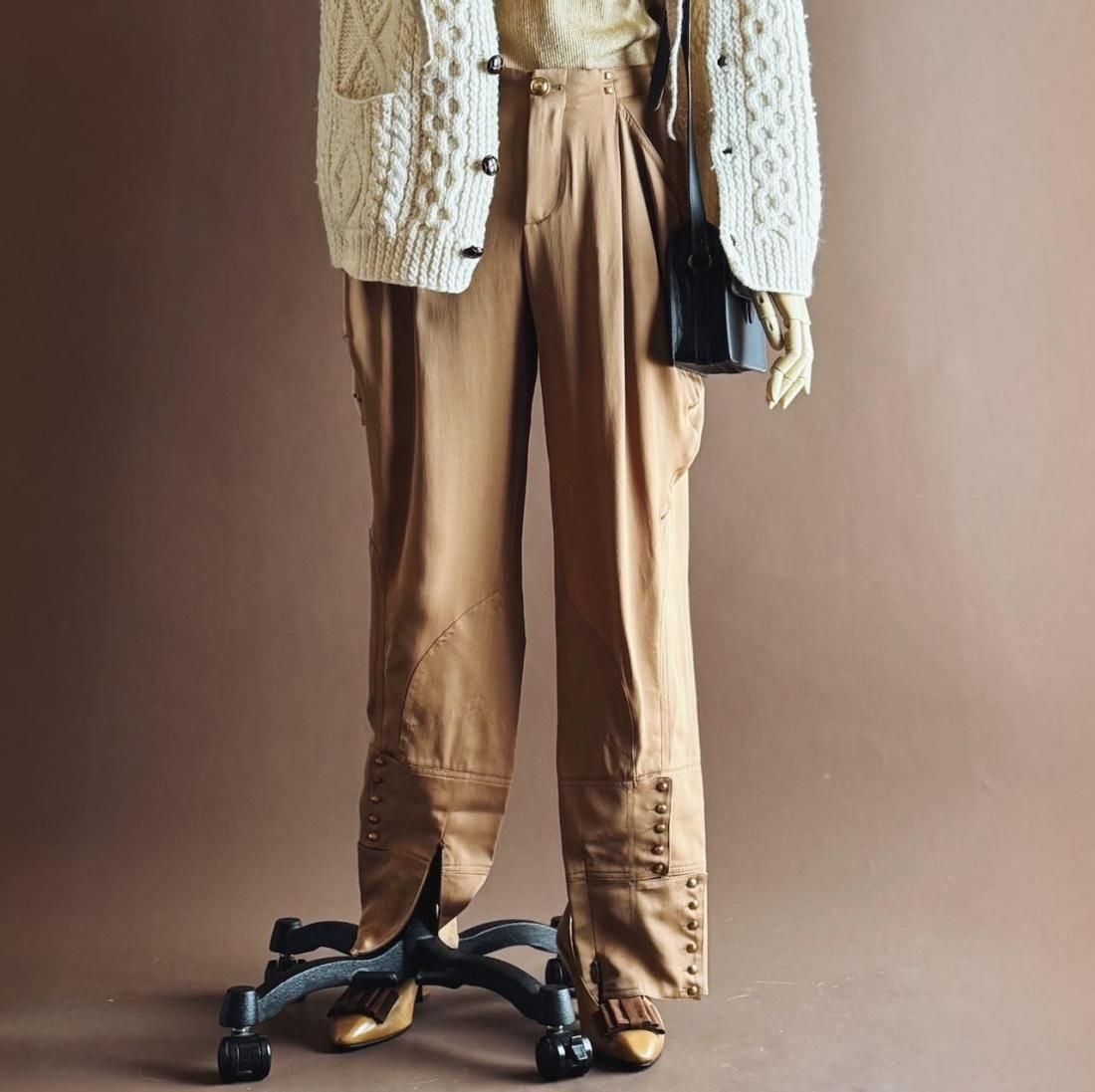 さらりとしなやかなシルク独特の風合いと、ジョッパーデザインが素敵なパンツ。