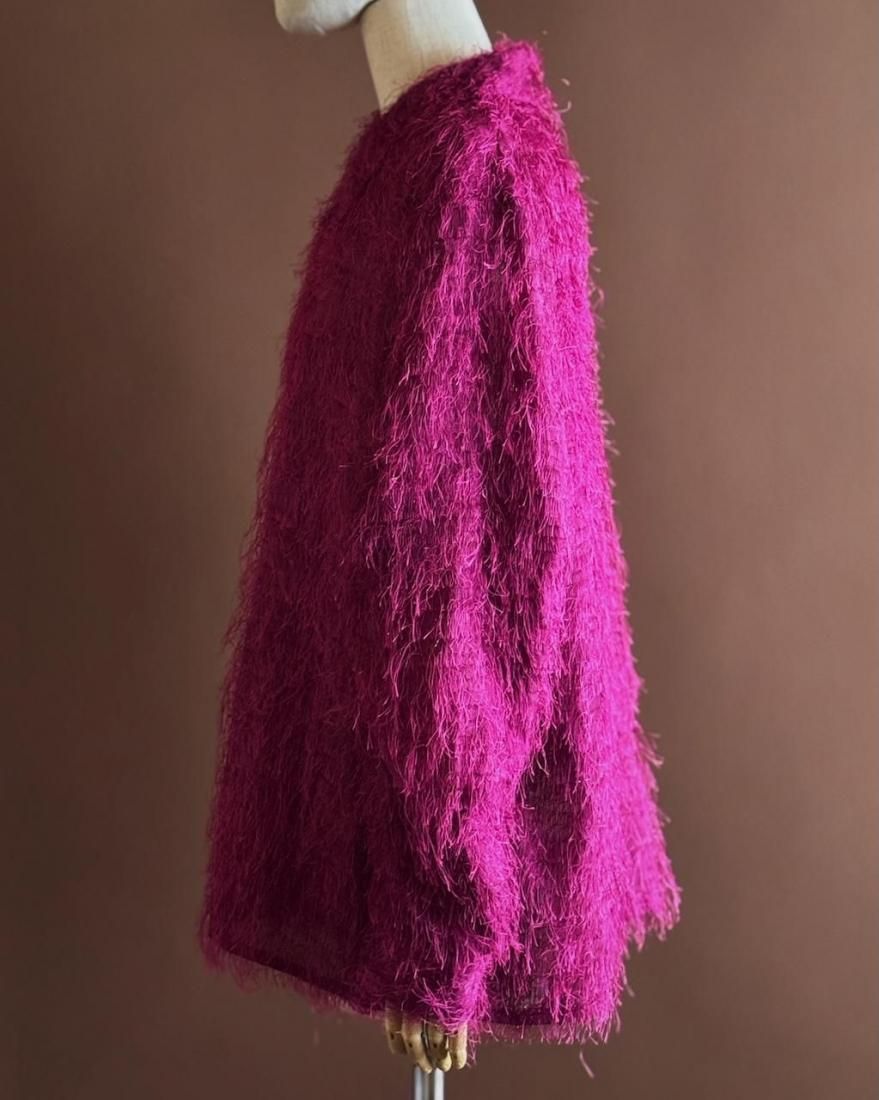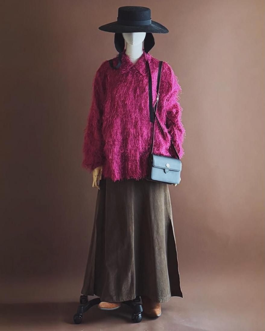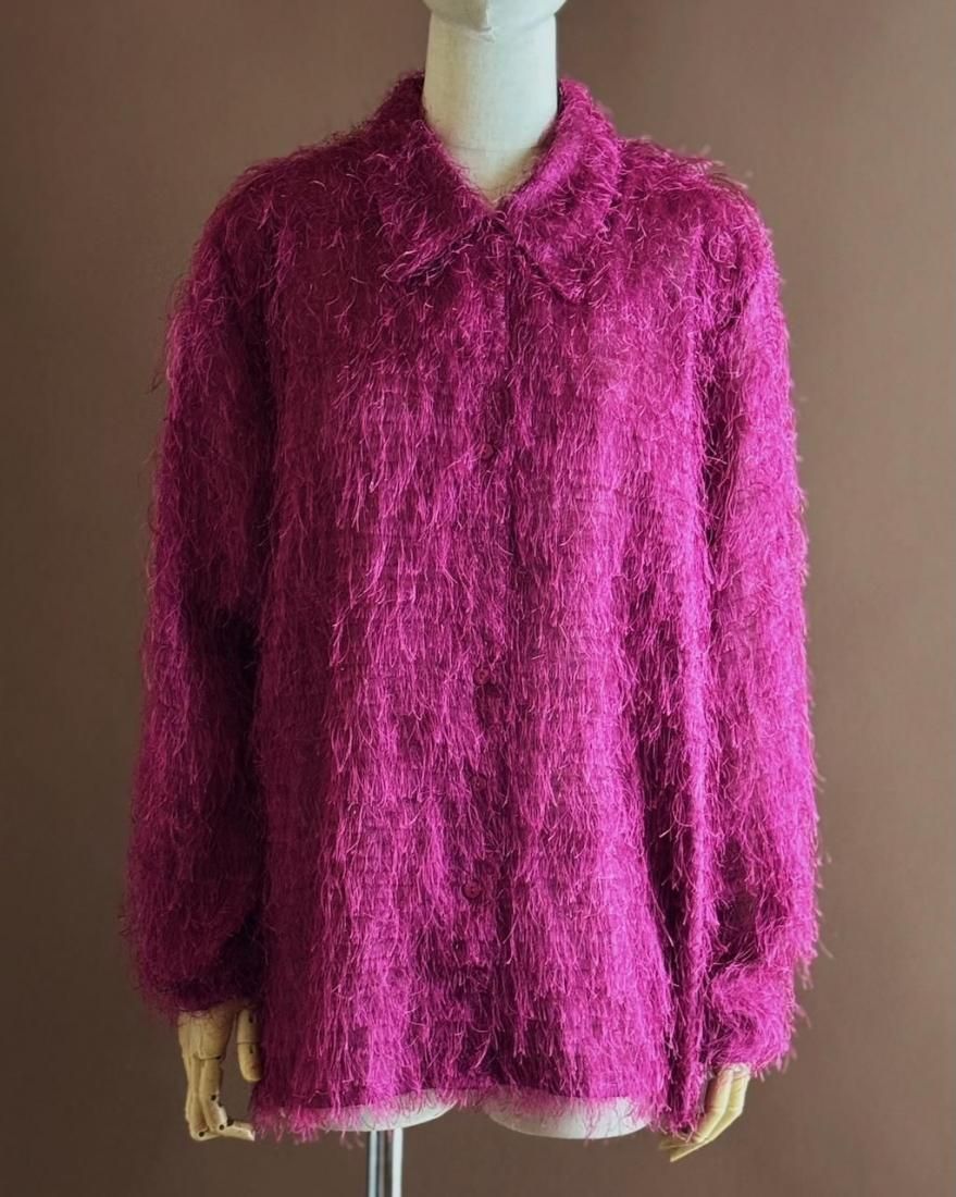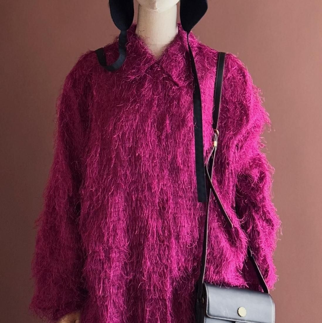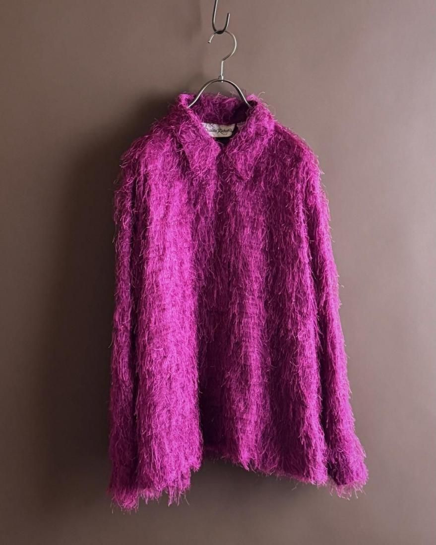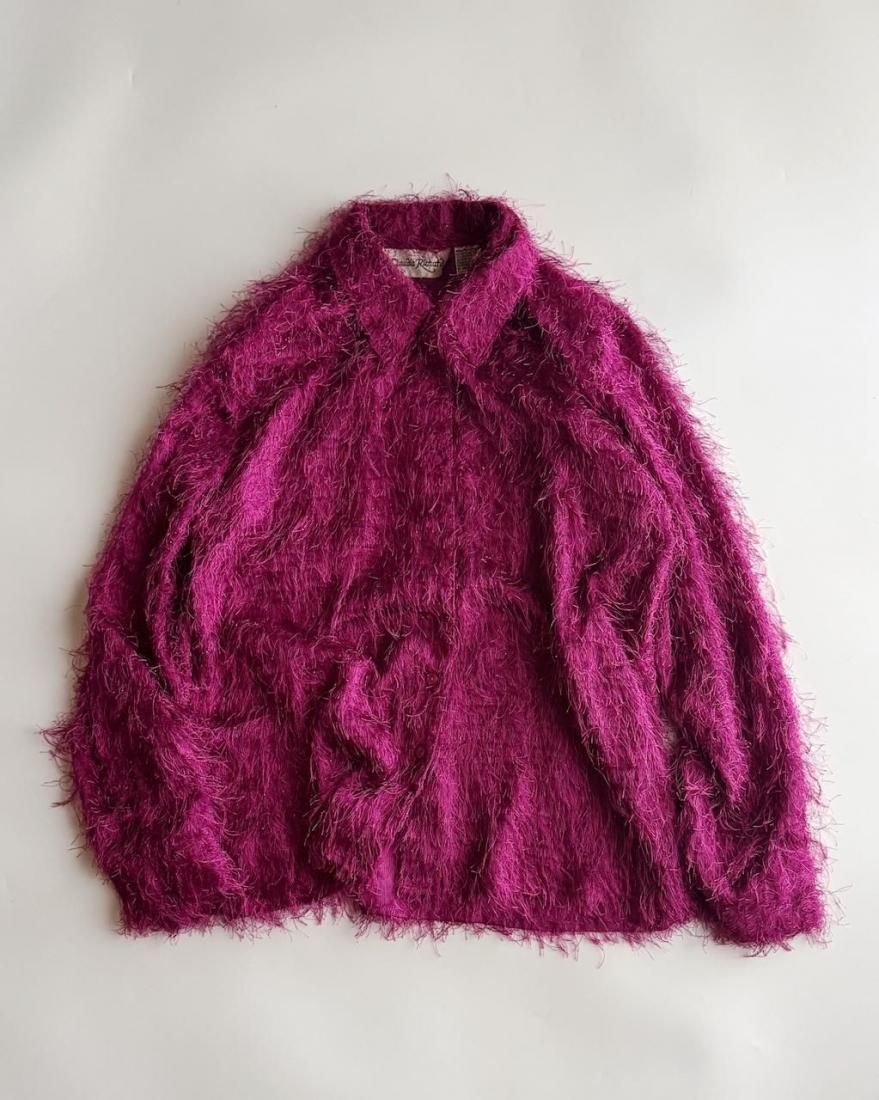 もけもけ、ケバケバっとした風合いにちらっとラメ糸が織り込まれた、ぬいぐるみみたいで可愛いシャツ。