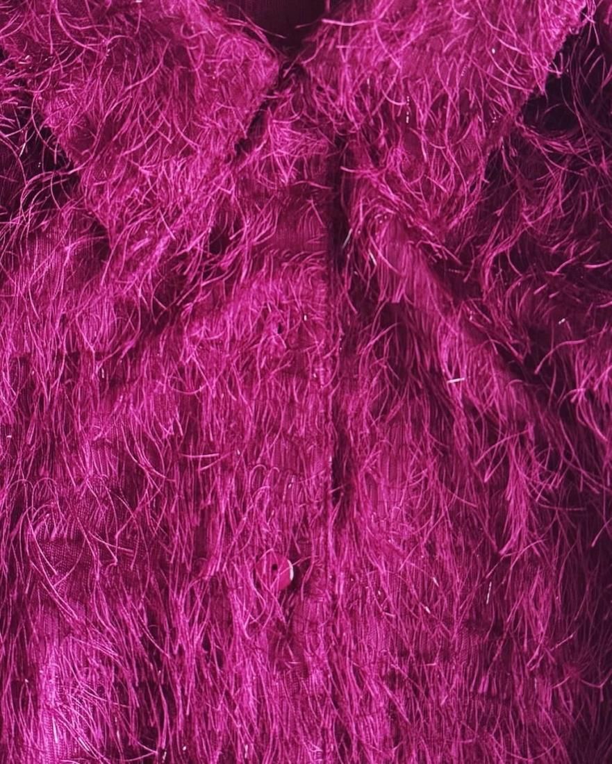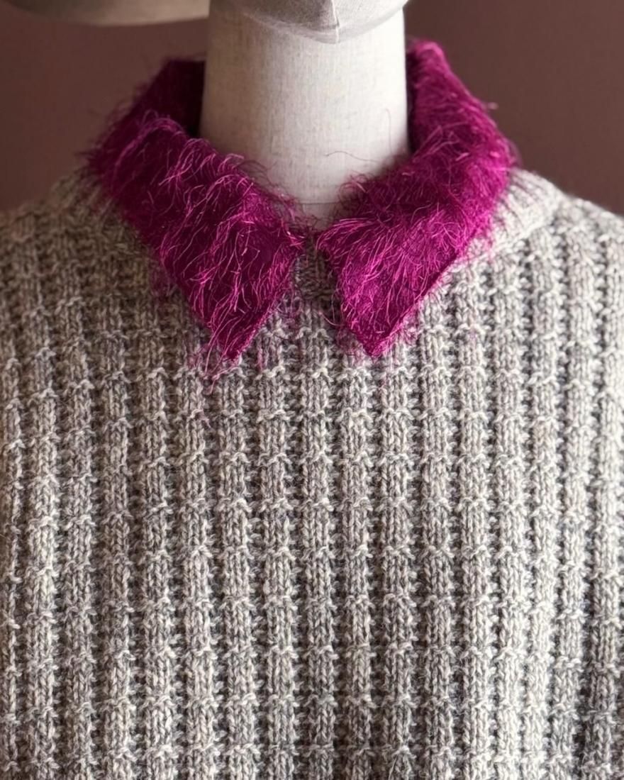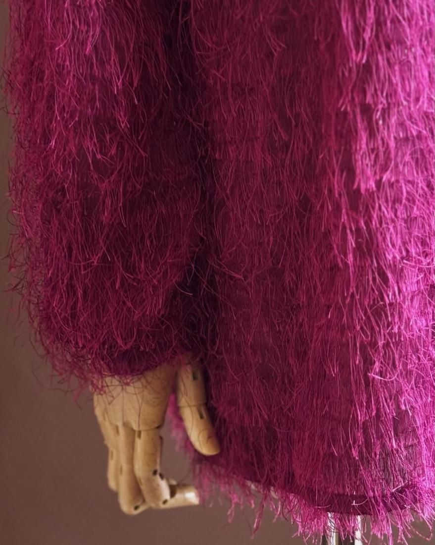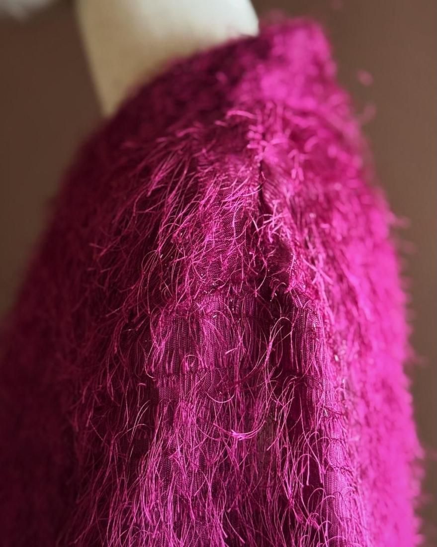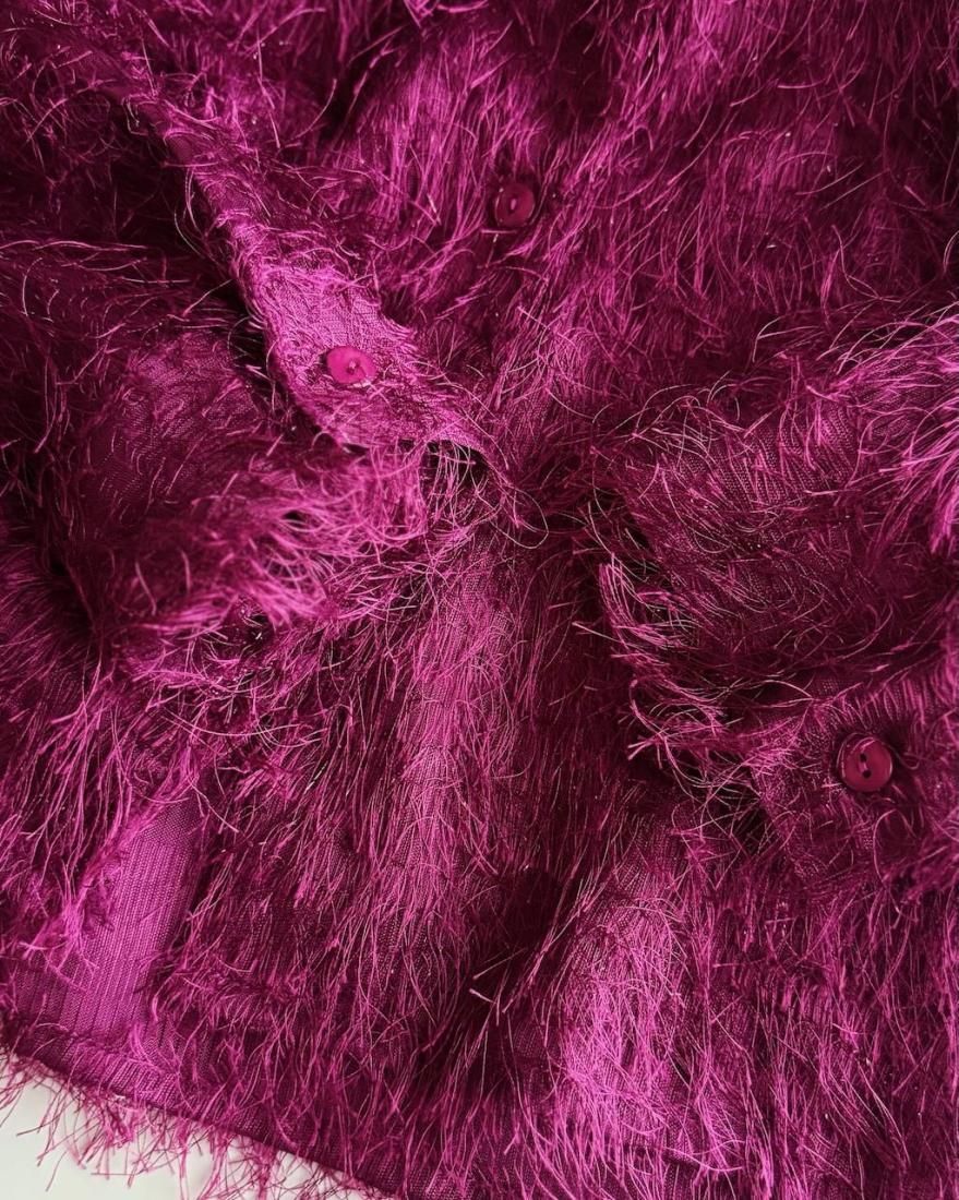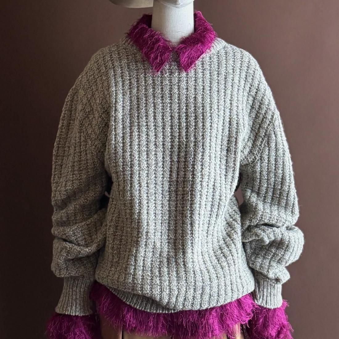 もけもけ、ケバケバっとした風合いにちらっとラメ糸が織り込まれた、ぬいぐるみみたいで可愛いシャツ。