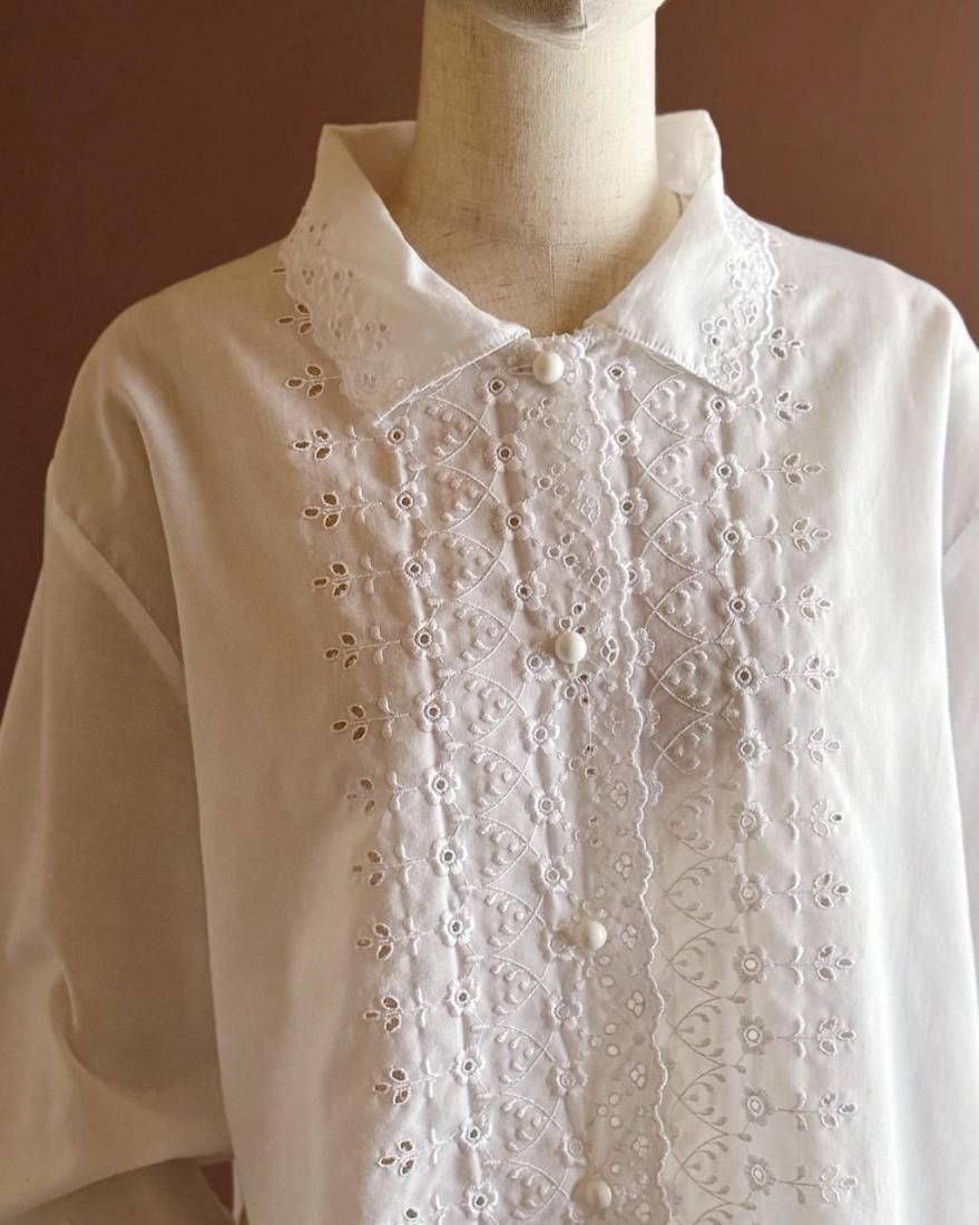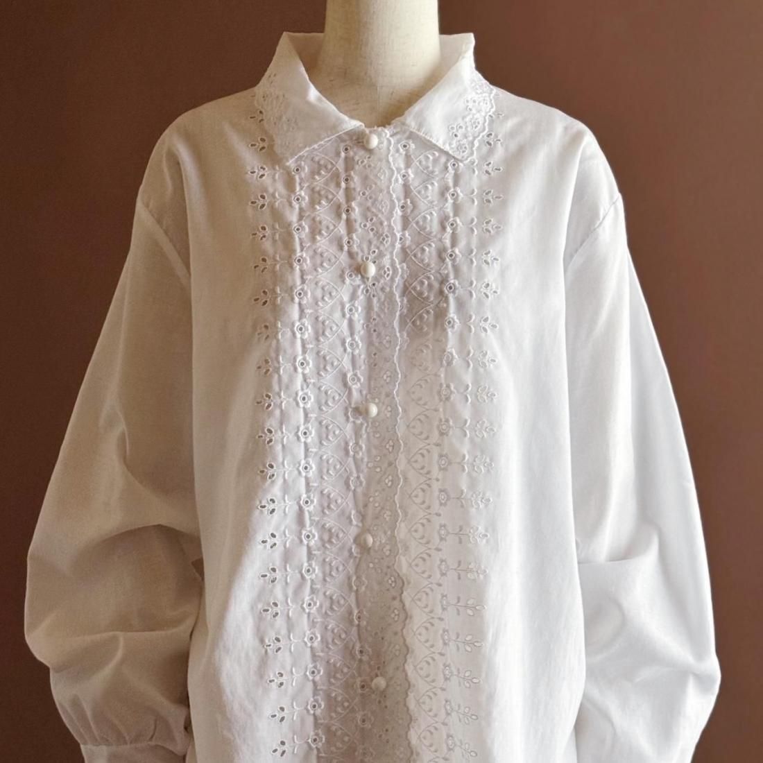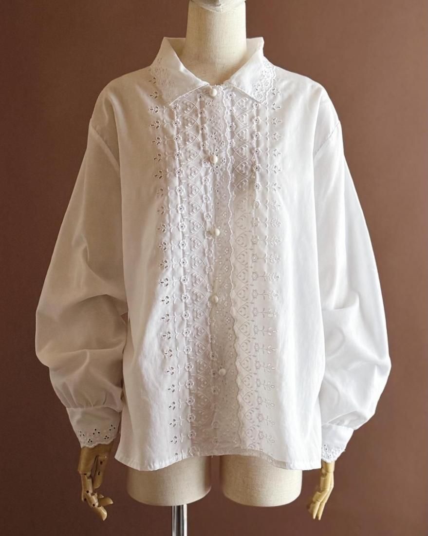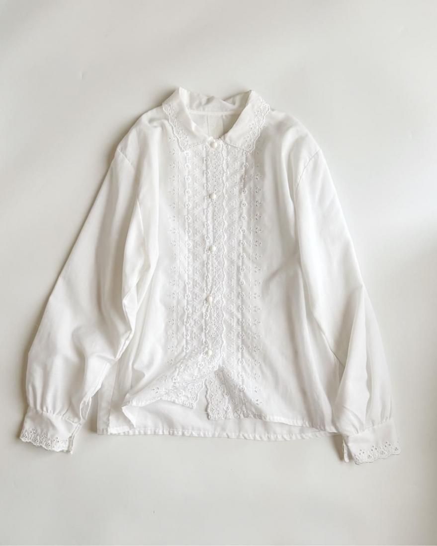 フランス製の控えめなレース使いが素敵なブラウスです。