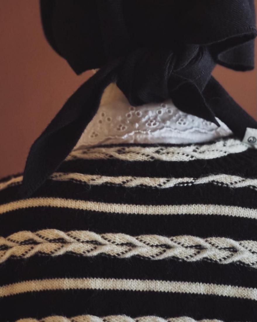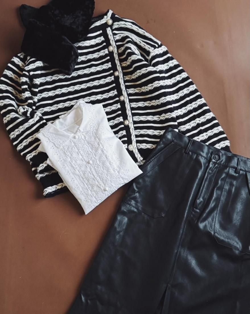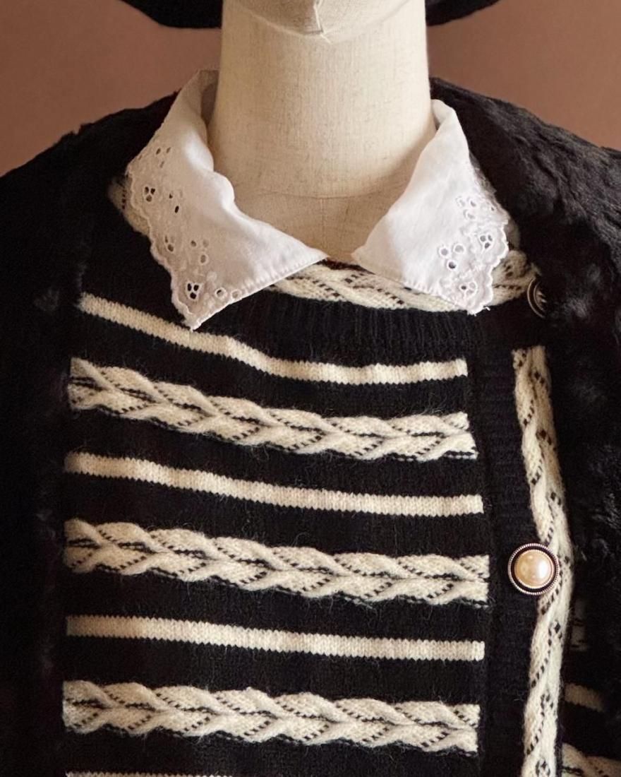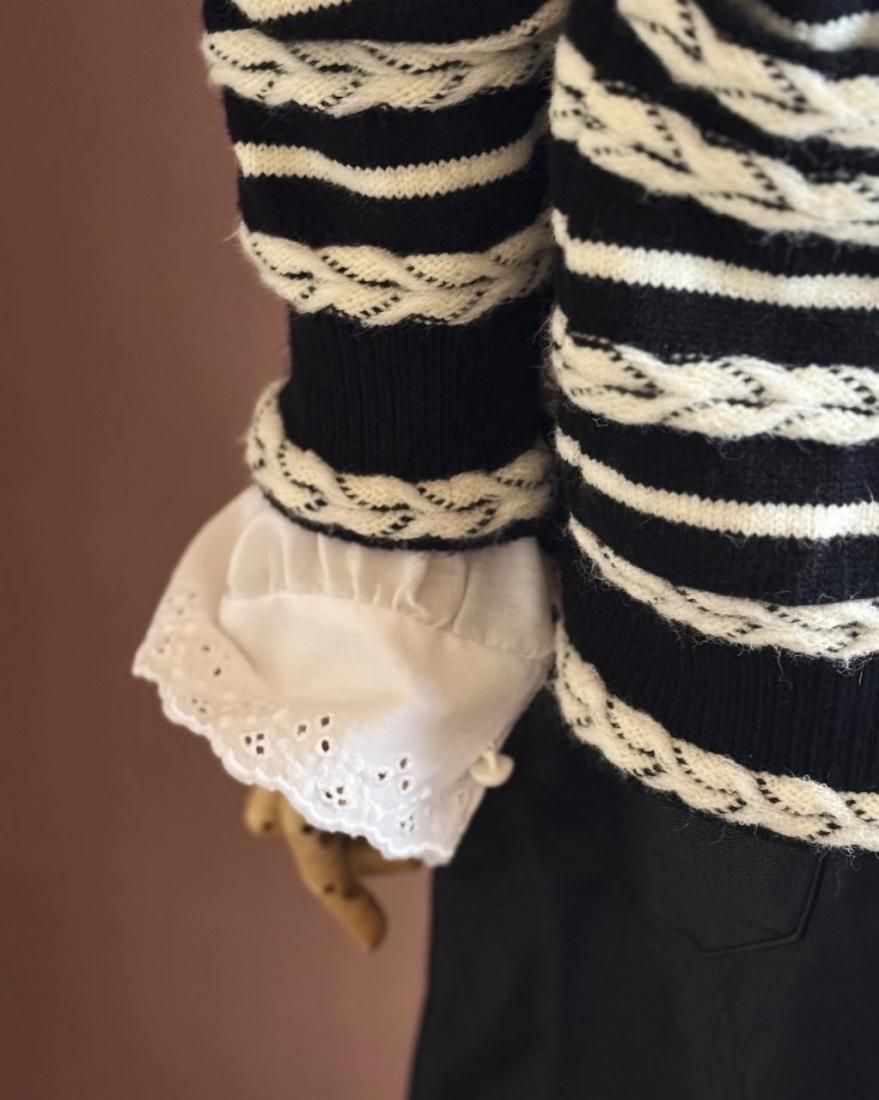 白いボタン使いがとても素敵なんですが、袖口ボタン一つだけ似たパールボタンになっています。